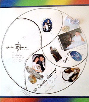 In late 1997, I tried my hand at a conception mandala. I drew a giant circle on a poster board with a rainbow border. The circle had four sections within it, each with pictures, poems and prayers inside. In one of the sections, I wrote the words “Angel Baby” and glued a picture of a child-angel sitting on a sliver of a moon staring at the stars (a few years later, Debra Snyder, author of Intuitive Parenting and president of The Heartglow Center, invited me to join an online support group for mothers of children with similar disabilities called AngelBabyMoms). It was a little out there, maybe, but prayerful, and something I took seriously.